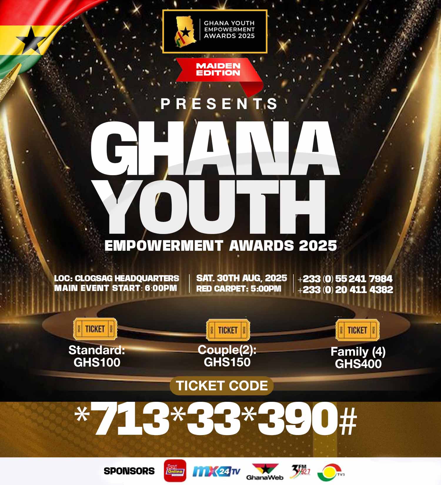 Our work focused on creating a bold and inspiring visual identity that reflects the energy and vision of Ghana’s youth. The design combines modern typography, dynamic shapes, and national colors, making it suitable for award ceremonies, media promotions, digital campaigns, and event branding.